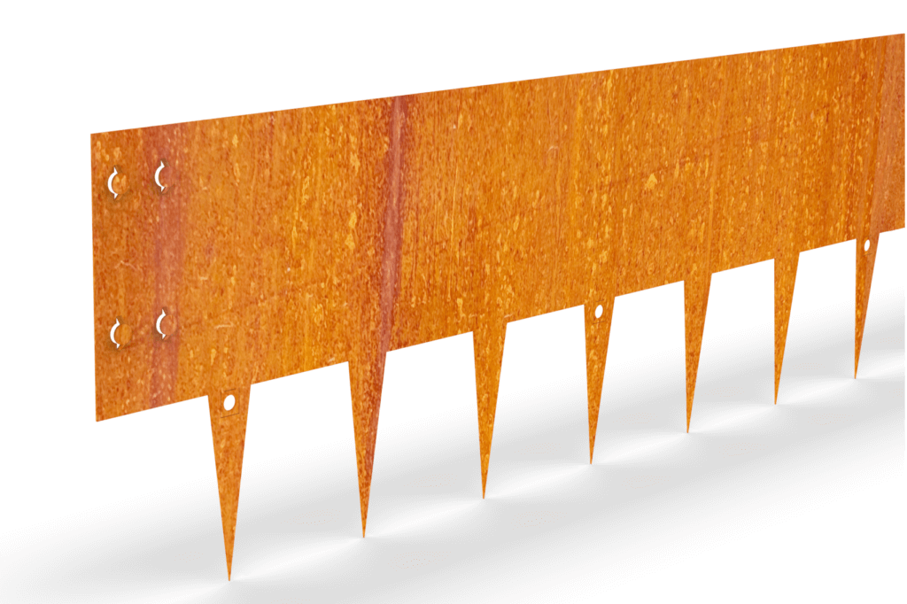 Kraštovaizdžio bortelis „Easy go“ – tai patikimas sprendimas, padedantis greitai įvesti tvarką sklype. Kiekvienas 980 mm ilgio bortelis pagamintas iš Corten plieno (kitaip rūdinto plieno), kuris natūraliai suformuoja apsauginę patiną. Dažyti nereikia, paviršius įgauna sodrų atspalvį ir tampa atsparesnis aplinkai.
