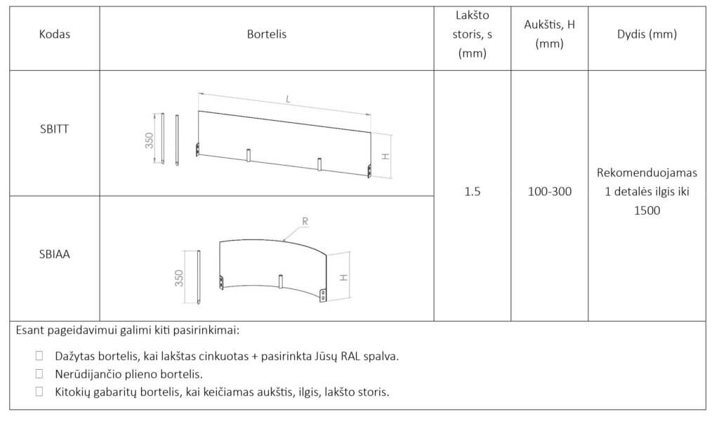 - Pagal projektą: parenkami ilgis ir aukštis – tikslus pritaikymas objektui.