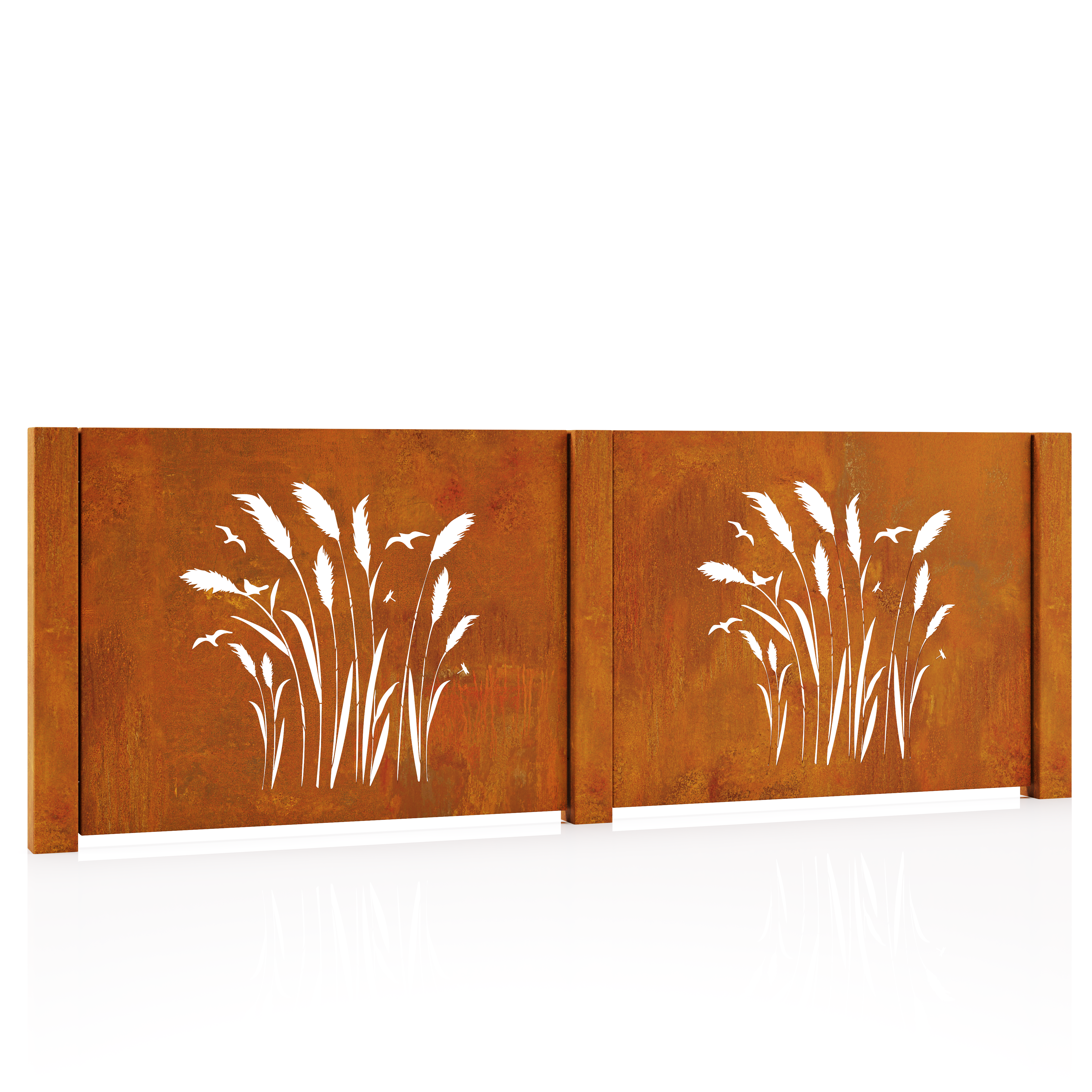 Tvirta konstrukcija iš rūdinto Corten plieno užtikrina ilgaamžiškumą ir atsparumą oro sąlygoms. Paviršius laikui bėgant įgauna vis šiltesnius atspalvius, todėl tvora natūraliai įsilieja į aplinką ir nereikalauja papildomos priežiūros.